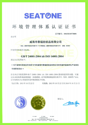威海市泰福紡織品有限公司成立于1999年7月。公司坐落于風景秀麗、氣候宜人的海濱城市—威海。公司占地面積30000平方米,總資產6000萬元,員工150人左右。公司以毛毯、披肩、圍巾、毛呢面料的生產和銷售為主營業務,產品面向賓館、軍隊、航空、家用和酒店配套等多個領域,適應不同客戶的需求。 公司現有梳紡機械6個系列,織機、起絨機等60余套,后整理設備30多套。毛毯年生產能力80萬條。公司產品遠銷澳大利亞、新西蘭、美國、日本、韓國、馬來西亞、荷蘭、英國、意大利等國家和地區,深受用戶好評。同時公司也得到穩步提高,先后順利通過BSCI、ICS驗廠、ISO質量、環境體系認證,獲得國際羊毛局WOOLMARK標志的使用權。產品也通過了歐洲SGS檢測。2015年公司投資近千萬擴建廠房,染色、紡紗、織造、起絨、成品全流程獨自完成。 視產品質量為企業生命,把客戶要求作為我們的工作目標,公司總經理王喜成先生愿與國內外客商密切合作,共求發展。